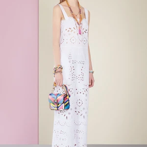 Những hình ảnh về biển còn được thể hiện qua những thiết kế móc rỗng sặc sỡ gợi lại những bộ đồ bơi đặc trưng của thời trang thập niên 70. Chiếc áo bowling và những chiếc áo bomber jacket với hoạ tiết hoa thêu trên những đường kẻ sọc gợi nhớ mùa Hè bên bãi biển ở Hawaii.