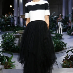 BST Xuân-Hè 2017 của Proenza Schouler mở đầu bởi những thiết kế quen thuộc: những chiếc chân váy cuốn với phần vạt bất đối xứng, những thiết kế đan chéo và những đường cutout táo bạo. Cách xử lý chất liệu tài tình càng làm tăng sự tương phản trong cấu trúc của từng thiết kế.