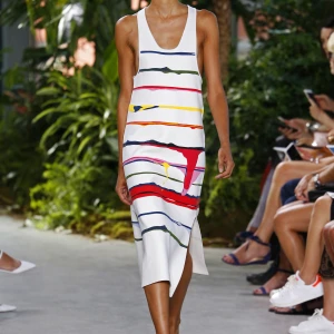 Có vẻ như Lazaro Hernandez và Jack McCollough có rất nhiều niềm vui khi thực hiện BST Xuân-Hè của Proenza Schouler. Nếu như trong những thiết kế áo khoác lông thú trong mùa Thu-Đông 2016 vô cùng chỉnh chu và sang trọng, thì lần này Hernandez và McCollough xử dụng áo cotton dài tay thay thắt lưng cho chiếc áo khoác lông chồn sặc sỡ.