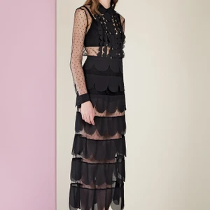 BST Xuân-Hè của Monse chuyển dần qua những thiết kế phối sequin độc đáo. Những đường nhấn sequin nhẹ nhàng và tinh tế tăng sự tương phản và tạo điểm nhấn cho những thiết kế suôn bay bổng.
