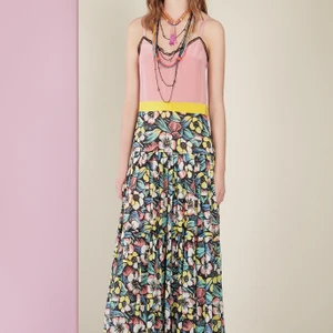 BST mở đầu bởi những chiếc váy sheer với hoạ tiết biển xanh, mây trắng dưới trời nắng và những chú chim bay lượn. Những hoạ tiết biển còn được lặp lại xuyên suốt BST Xuân-Hè của Red Valentino trong những chiếc váy xếp ly hay áo khoác dáng rộng.