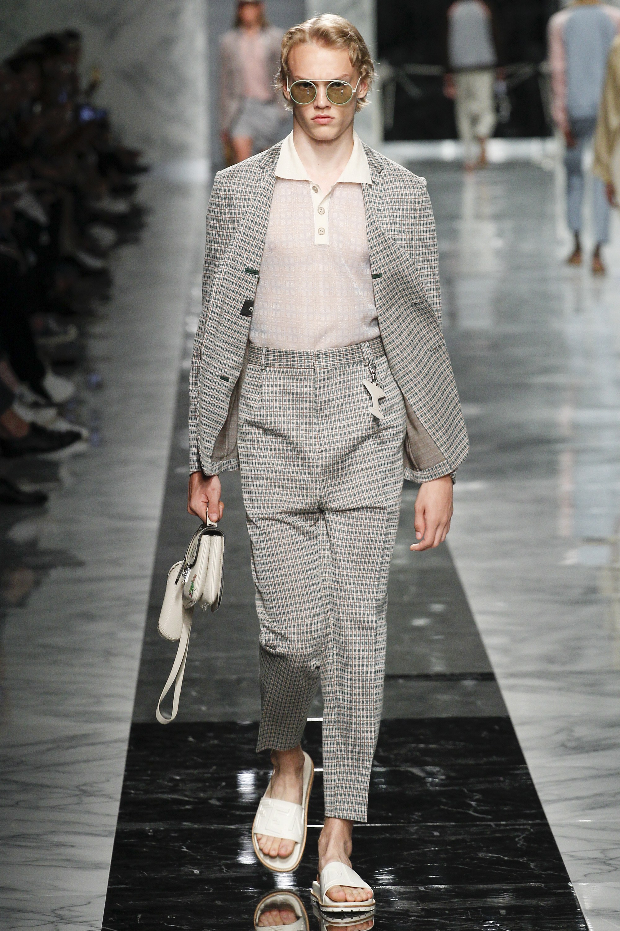 Thương hiệu Fendi trình diễn BST thời trang Nam Xuân – Hè 2018 với những thiết kế dung hoà giữa thế mạnh của cả hai phái, vừa lịch lãm lại đồng thời khơi gợi vẻ đẹp lãng mạn. (Ảnh: Luca Tombolini / Indigital.tv)