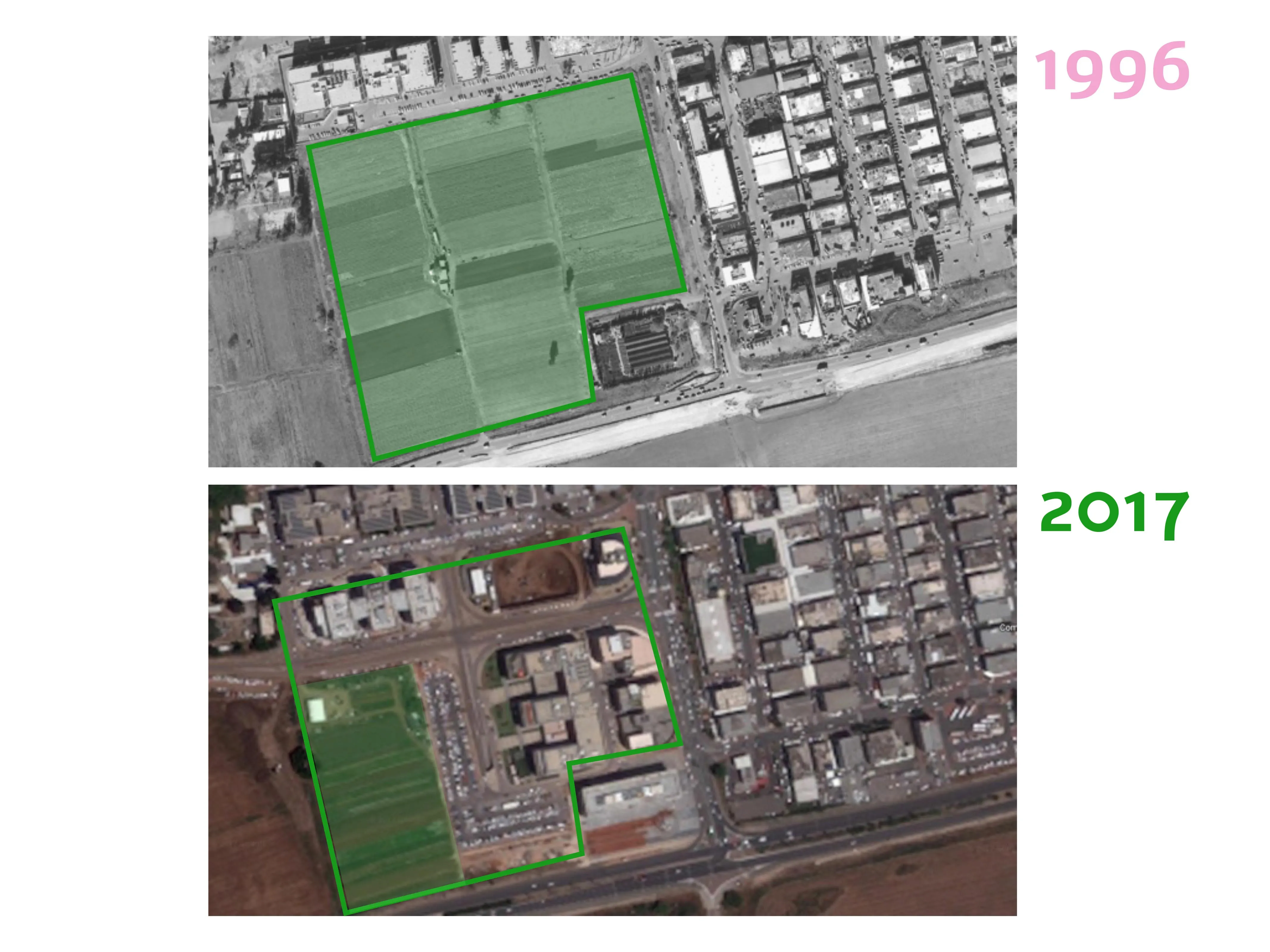 Hình ảnh chụp từ vệ tinh từ trên cao chỉ sự thay đổi ở khu vực canh tác của cha Dana. (ảnh: NVCC)