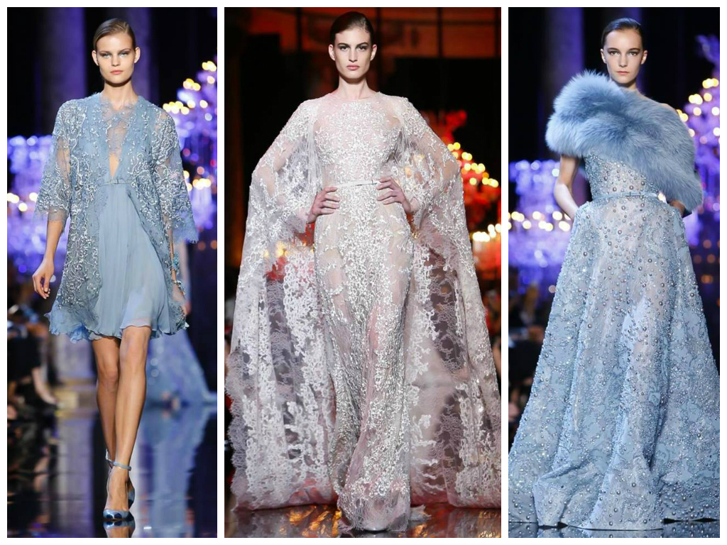 Nhà thiết kế 50 tuổi tưởng chừng sẽ chẳng bao giờ xem đến những bộ phim hoạt hình Disney. Thế nhưng ông cho biết, nàng Elsa trong phim Frozen chính là nàng thơ trong bộ sưu tập này. Sự lạnh giá của nàng đã khiến ông nhuộm hầu hết các thiết kế của mình với màu xanh tái của đá hay trắng tinh khiết của tinh thể tuyết. Toàn bộ không gian trình diễn rất tối, chỉ có ánh sáng từ những cây đèn chùm phản chiếu lên ngọc trai và sequin trang phục lấp lánh huyền ảo.