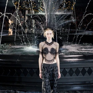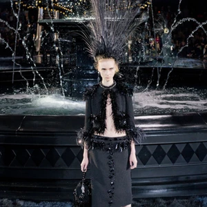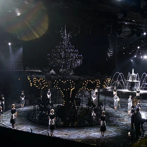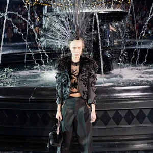 “Show Girl – Vũ Nữ” đó là nguồn cảm hứng của Marc Jacobs cho BST Xuân – Hè 2014 lần này, và sàn diễn cũng là nơi hội tụ tất cả những tinh túy, những kỉ niệm đẹp nhất mà Marc Jacobs đã từng dành cho Louis Vuitton. Nó giống như một thước phim quay chậm với những cầu thang cuốn, vòng quay ngựa gỗ, cánh cửa khách sạn, thang máy và những door-man trong bộ đồng phục lịch lãm. Các cô gái xuất hiện trong những trang phục màu đen huyền bí với những chiếc mũ Folies khổng lồ được trang trí tinh xảo.
