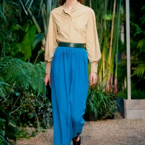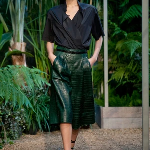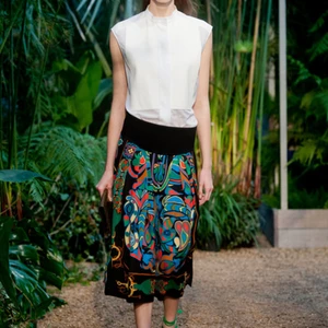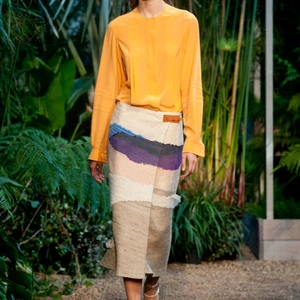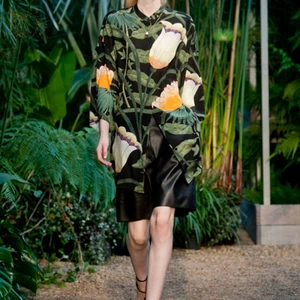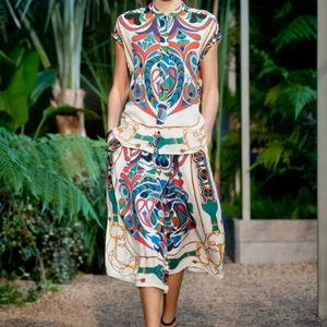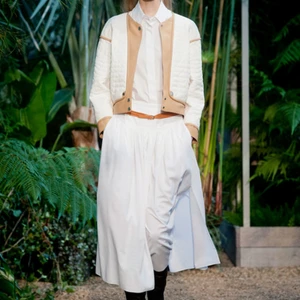 Sự tinh tế – đó là tất cả những gì khi bạn nhắc đến show diễn của Hermes Xuân – Hè 2014 này. Dựa trên bối cảnh rừng cây của vùng nhiệt đới, BST Hermes nhẹ nhàng, giản dị nhưng không mất đi nét sang trọng, quý phái. Áo lụa nhẹ nhàng phối hợp với váy quấn dài không thể thiếu một chiếc áo cardigan mỏng hay áo khoác lửng. Và sẽ là thiếu sót khi chúng ta không nhắc tới những đường viền thấp hay đường cắt mềm mại tạo nên một nét quyến rũ cho BST lần này của Hermès.