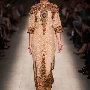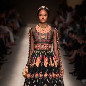 Điểm nổi bật nhất trong BST là những đường hoạ tiết nghệ thuật được thêu bằng tay một cách tinh xảo trên mặt vải bóng đơn giản, thể hiện sự tinh tế mà vẫn giữ được nét sang trọng cần có. Ngoài ra phải nói tới nghệ thuật in hoạ tiết của những người thổ dân lên quần ống rộng hay váy ngắn, chân váy dài lấy cảm hứng từ phong cách thời phục hưng. Với mái tóc được chải đều về phía sau đi kèm với vương miện, tất cả đều làm bạn lầm tưởng rằng bạn đang xem một bức tranh nghệ thuật phác họa những nàng công chúa kiều diễm thời xa xưa.
