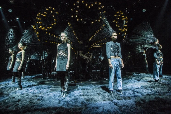 “Show Girl – Vũ Nữ” đó là nguồn cảm hứng của Marc Jacobs cho BST Xuân – Hè 2014 lần này, và sàn diễn cũng là nơi hội tụ tất cả những tinh túy, những kỉ niệm đẹp nhất mà Marc Jacobs đã từng dành cho Louis Vuitton. Nó giống như một thước phim quay chậm với những cầu thang cuốn, vòng quay ngựa gỗ, cánh cửa khách sạn, thang máy và những door-man trong bộ đồng phục lịch lãm. Các cô gái xuất hiện trong những trang phục màu đen huyền bí với những chiếc mũ Folies khổng lồ được trang trí tinh xảo.