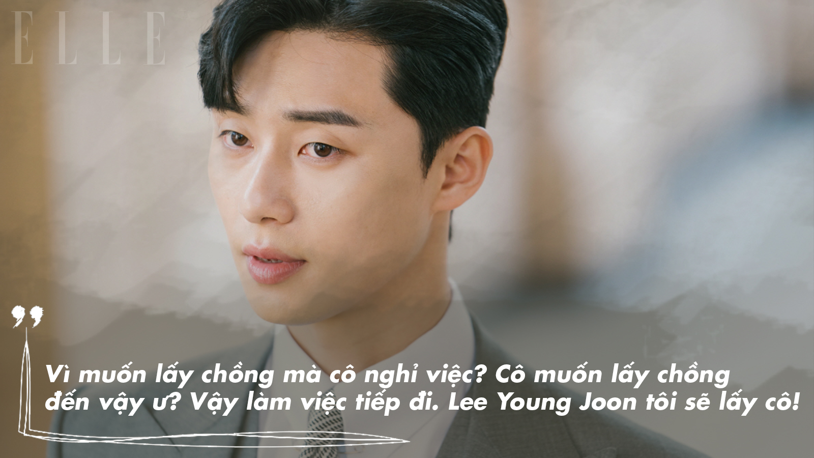 “Vì muốn lấy chồng mà cô nghỉ việc? Cô muốn lấy chồng đến vậy ư? Vậy làm việc tiếp đi. Lee Young Joon tôi sẽ lấy cô!”.