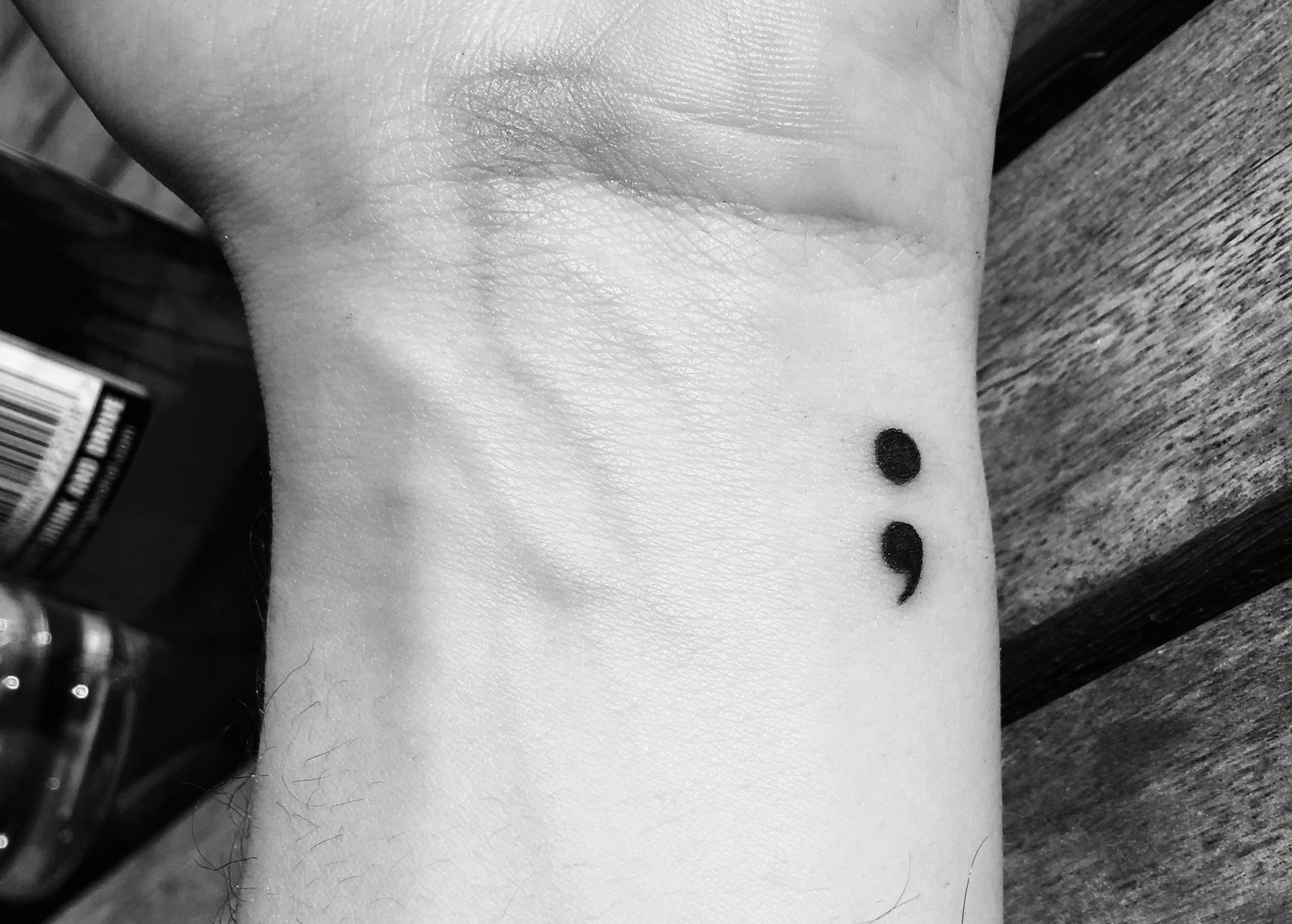Dấu chấm phẩy đánh dấu vị trí tạm dừng trong câu, nhưng không phải là kết thúc. Hình xăm này nhắc nhở rằng: có những tình huống tưởng như bạn phải dừng lại, nhưng bạn đã lựa chọn tiếp tục.