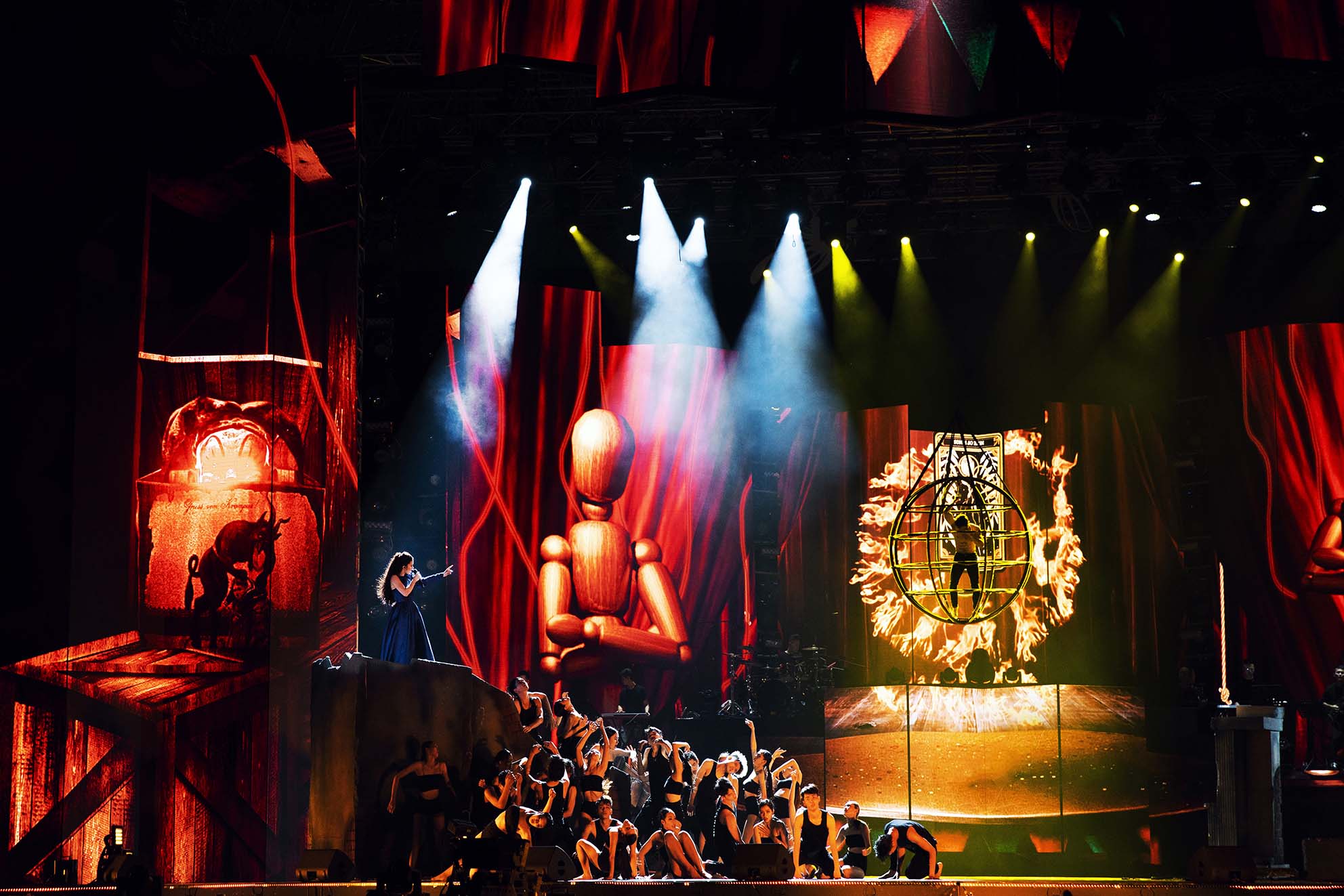 Không chỉ có âm nhạc, mỗi tiết mục là sự tổng hòa của nghệ thuật biểu diễn, vũ đạo, dàn dựng sân khấu, trình chiếu hình ảnh – âm thanh – ánh sáng, phục trang, thậm chí là bắn pháo hoa hay phun lửa… Tất cả đều thể hiện tính mực thước, chuyên nghiệp và đầy tâm huyết từ ê-kíp sản xuất.