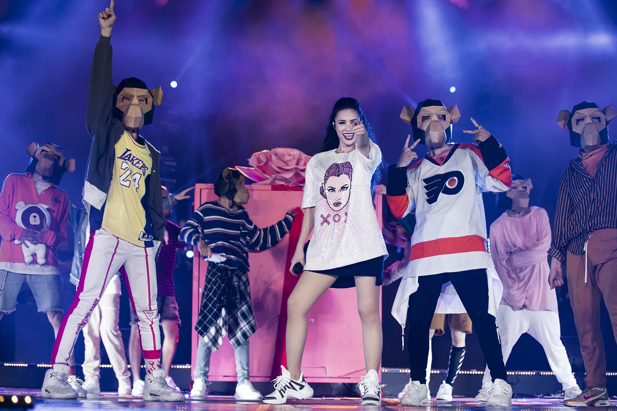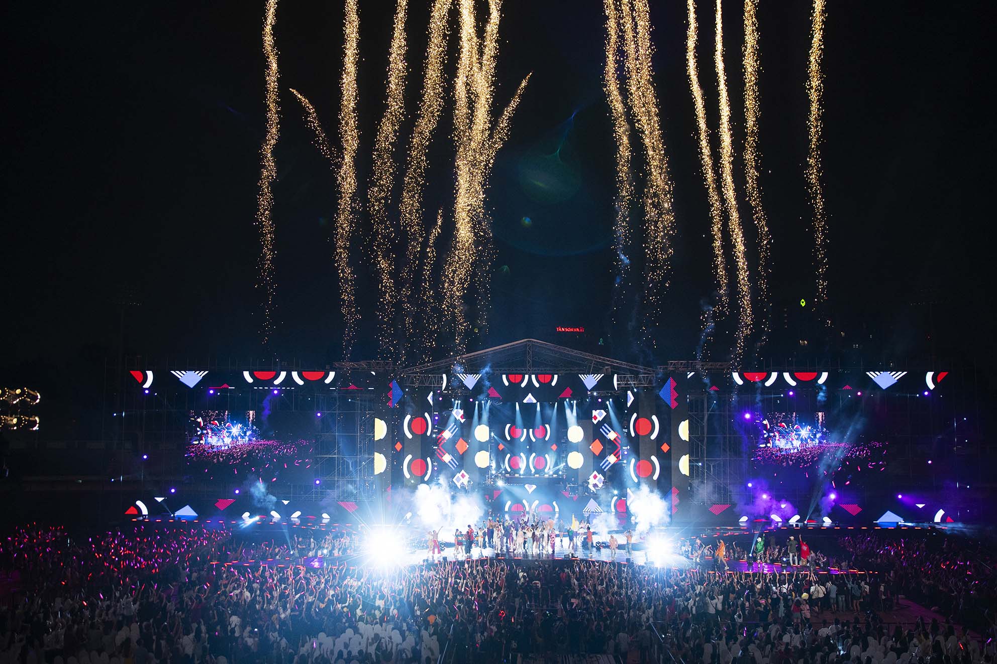 Không chỉ có âm nhạc, mỗi tiết mục là sự tổng hòa của nghệ thuật biểu diễn, vũ đạo, dàn dựng sân khấu, trình chiếu hình ảnh – âm thanh – ánh sáng, phục trang, thậm chí là bắn pháo hoa hay phun lửa… Tất cả đều thể hiện tính mực thước, chuyên nghiệp và đầy tâm huyết từ ê-kíp sản xuất.