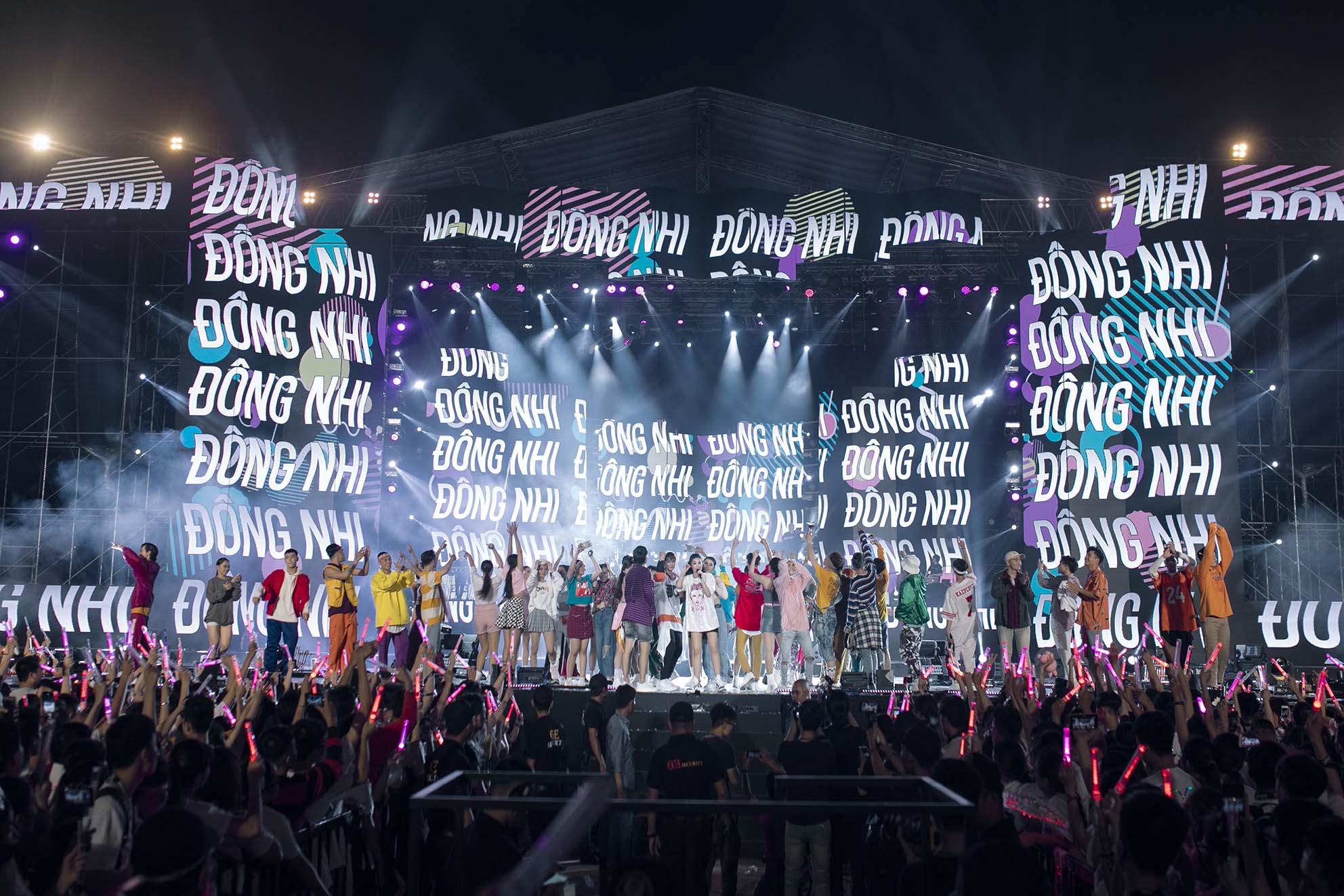 Giữ đúng lời hứa, đêm qua (22/12), liveshow Ten On Ten – dự án cuối cùng trong chuỗi hoạt động kỷ niệm 10 năm ca hát của Đông Nhi đã chính thức diễn ra tại Sân vận động Quân Khu 7, TP. HCM. Không hổ danh là một trong những ca sĩ có lượng fan đông đảo nhất Vpop, hàng chục ngàn fan của Đông Nhi phủ kín hàng ghế trên khán đài và phía trước sân khấu. Mỗi lần fan hô tên Đông Nhi hoặc hát theo, có thể cảm nhận không khí áp đảo và năng lượng cuồng nhiệt của những người đã dõi theo nữ ca sĩ suốt những năm qua. Bên cạnh đó, một số ngôi sao trong làng giải trí Việt cũng đến xem Đông Nhi biểu diễn như ca sĩ – diễn viễn Minh Hằng, diễn viên Khả Ngân, diễn viên Song Luân, nhóm nhạc Uni5, diễn viên Diệu Nhi, ca sĩ Suni Hạ Linh… Tất cả cùng cầm lightstick, tạo nên một không gian vô cùng rực rỡ – điều mơ ước của bất cứ ca sĩ nào khi tổ chức đêm diễn riêng. Đặc biệt, lightstick của liveshow Ten On Ten được Đông Nhi đầu tư đổi màu theo sự điều khiển như chuẩn mô hình Kpop, hòa hợp hoàn hảo với màu sắc chủ đề của từng tiết mục biểu diễn trên sân khấu. Đây cũng là liveshow đầu tiên tại Việt Nam sử dụng lightstick đổi màu.