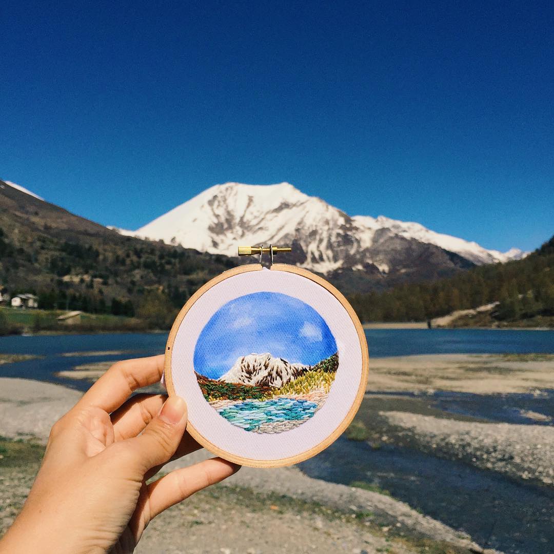 Bằng cách kết hợp giữa chuyến đi du lịch vòng quanh thế giới và niềm đam mê nghệ thuật tranh thêu, Teresa Lim đã mô tả vẻ đẹp của những danh lam thắng cảnh cô may mắn nhìn thấy bằng những sợi chỉ thêu của mình. Điều đặc biệt là cô ấy không dựa vào những bức ảnh chụp, mà ở tại chính nơi cô đặt chân đến để thêu hoàn thiện một bức tranh.