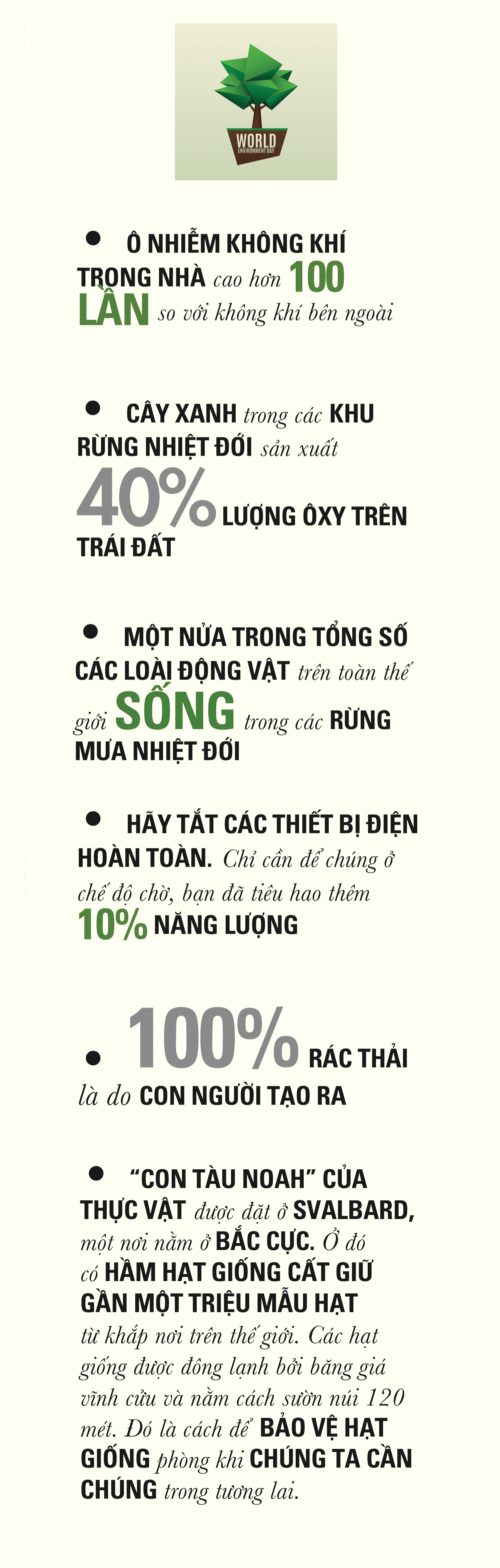 Biến đổi khí hậu không còn là đề tài có thể lảng tránh, nhưng liệu bạn đã nhận thức đầy đủ về những gì đang thật sự diễn ra trong cuộc sống hàng ngày của chúng ta? Những con số sau đây sẽ buộc chúng ta phải ý thức nhiều hơn về các vấn đề toàn cầu, ô nhiễm môi trường và bảo vệ sinh thái.