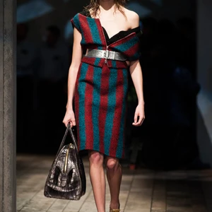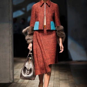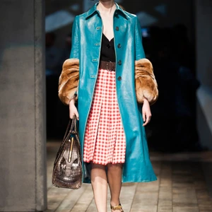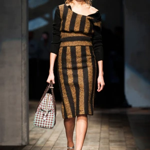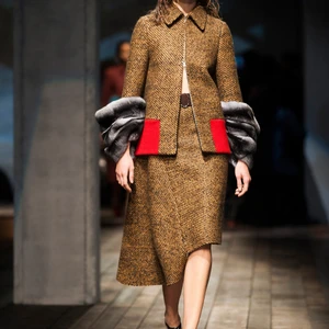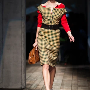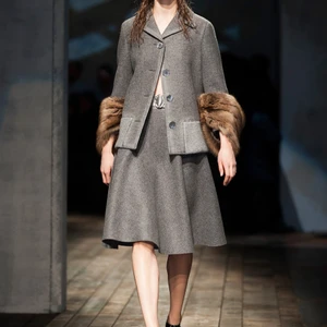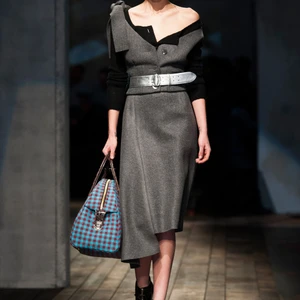 Xuyên suốt bộ sưu tập nổi bật lên hai kiểu váy phổ biến của những năm cuối thập niên 1940 và đầu 1950: váy chữ A xòe rộng dần về phía đầu gối và váy dáng thẳng nhưng Prada đã đắp thêm vải một bên để tạo thành kiểu váy có gấu bất đối xứng. Ngoài ra bạn sẽ thấy những chiếc tay áo được may thêm phần cổ tay big size xếp nếp trông như một nửa tấm choàng giữ ấm tay của các quý cô xứ lạnh.