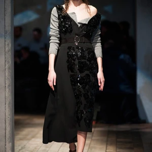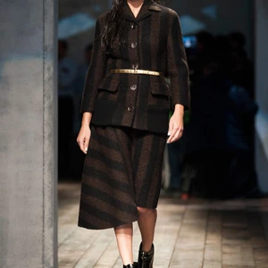 Những cô người mẫu tóc ướt như vừa bước vào từ dưới cơn mưa khoác trên mình những bộ trang phục như đang còn mặc dang dở. Áo cardigan chưa cài hết cúc, đầm đính kim sa không tay phối với áo tay dài được kéo bạnh ra như trễ vai khiến người xem nghĩ rằng người mặc không có thời gian để kéo chúng lên cho chỉnh tề. Tất cả tạo nên một ấn tượng hết sức tự nhiên, một sự phối hợp tuyệt vời giữa sự cao cấp và bình dân.