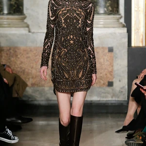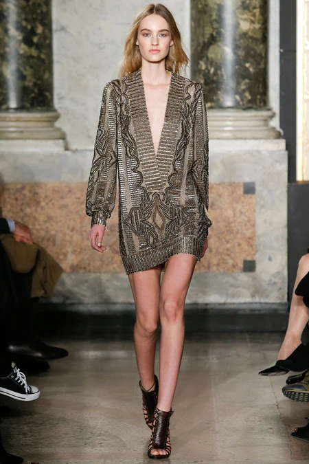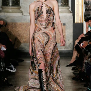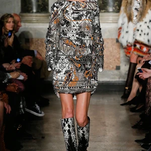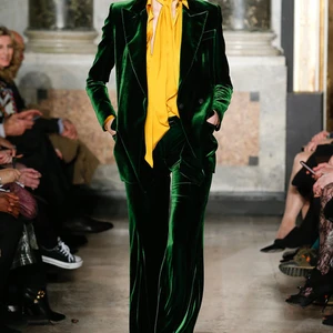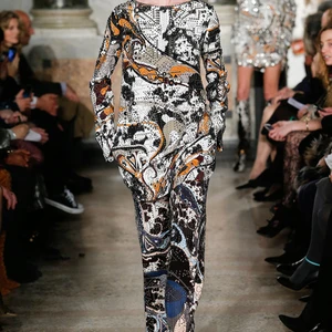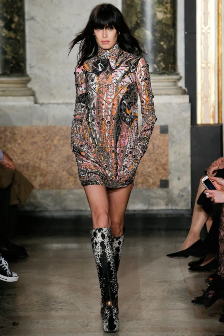 Bên cạnh xu hướng menswear dẫn đầu các sàn diễn thời trang, tua rua và kỹ thuật đính đá trang sức lấp lánh cũng xuất hiện thường xuyên hơn. Bộ sưu tập Emilio Pucci mùa này không là một ngoại lệ khi tập hợp đủ các xu hướng vừa nêu. Ngoài bộ sưu tập gần đây của Dolce & Gabbana thì Emilio Pucci cũng xuất sắc ghi điểm khi dùng đá lấp lánh để nhấn nổi các họa tiết hình học cầu kì trên thiết kế menswear và đầm dạ hội.