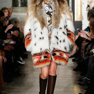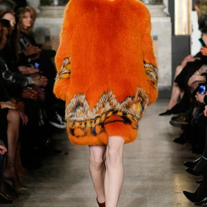 Các mẫu áo khoác ngoài cho mùa lạnh cũng được thiết kế với chất lông sang trọng. Những chiếc áo khoác lông cáo to, mềm mại xuất hiện lạ mắt với họa tiết tribal màu cam ở đường viền chân. Đặc biệt, việc sử dụng chất liệu lông làm dây đeo túi xách hứa hẹn sẽ tạo nên xu hướng mới cho thời trang túi xách năm nay.