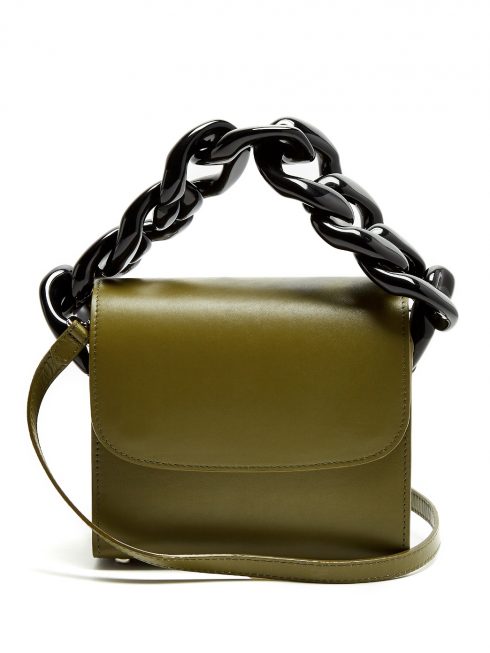 Túi Marques’Almeida mang trên mình màu xanh rêu có thể khiến mọi tín đồ thời trang rung rinh. Xuất hiện với dáng đứng hiện đại trên nền da sần, mọi thứ về túi Marques’Almeida đều nói đến sự hiện đại. Quai xách xích to bản càng làm nổi bật sự riêng biệt của Marques’Almeida.
