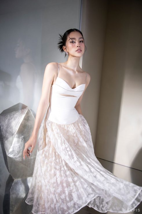 Những thiết kế của BST Fall Winter 2021 – Holiday là sự kết hợp hoàn hảo giữa các chất liệu như voan chiffon, lưới họa tiết, tafta mịn cùng những chi tiết cut-out, xuyên thấu phóng khoáng mà tinh tế, nhằm làm nổi bật nét nữ tính, lãng mạn nhưng vẫn quyền lực của người phụ nữ.