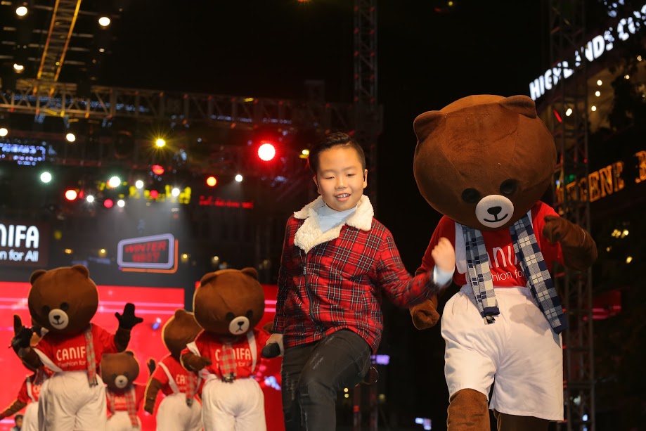 Giọng hát Việt nhí Quốc Thái dễ thương biểu diễn cùng các chú gấu như một món quà Giáng sinh ấm áp gửi tới các khán giả nhí tại phố đi bộ.