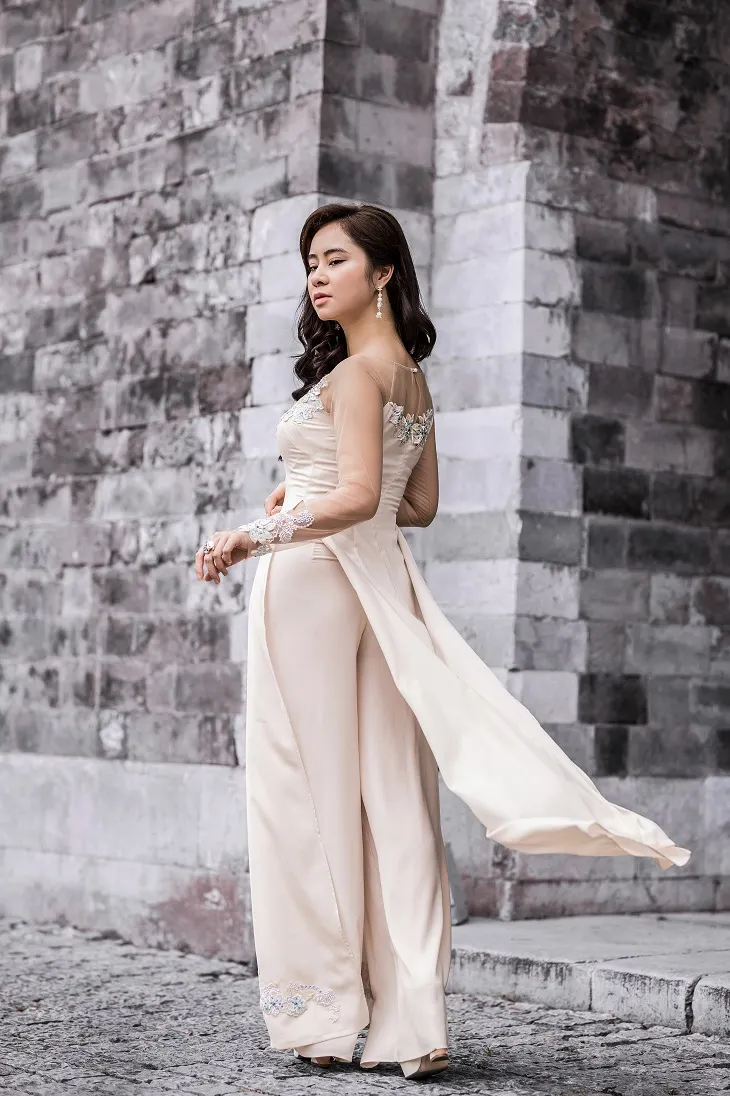 Với chất liệu chủ đạo là lụa tơ tằm, satin nguồn gốc sợi tự nhiên phối hợp với họa tiết thêu tay và điểm xuyết crystal được đính kết tỉ mỉ, cầu kỳ trên nền vải tone sure tone. Những mẫu áo dài dự tiệc này được thiết kế với ý đồ giúp khoe ưu điểm của phụ nữ ở phần cổ, vai và che bắp tay khiến chị em hoàn toàn tự tin với gout thẩm mỹ tinh tế của mình.