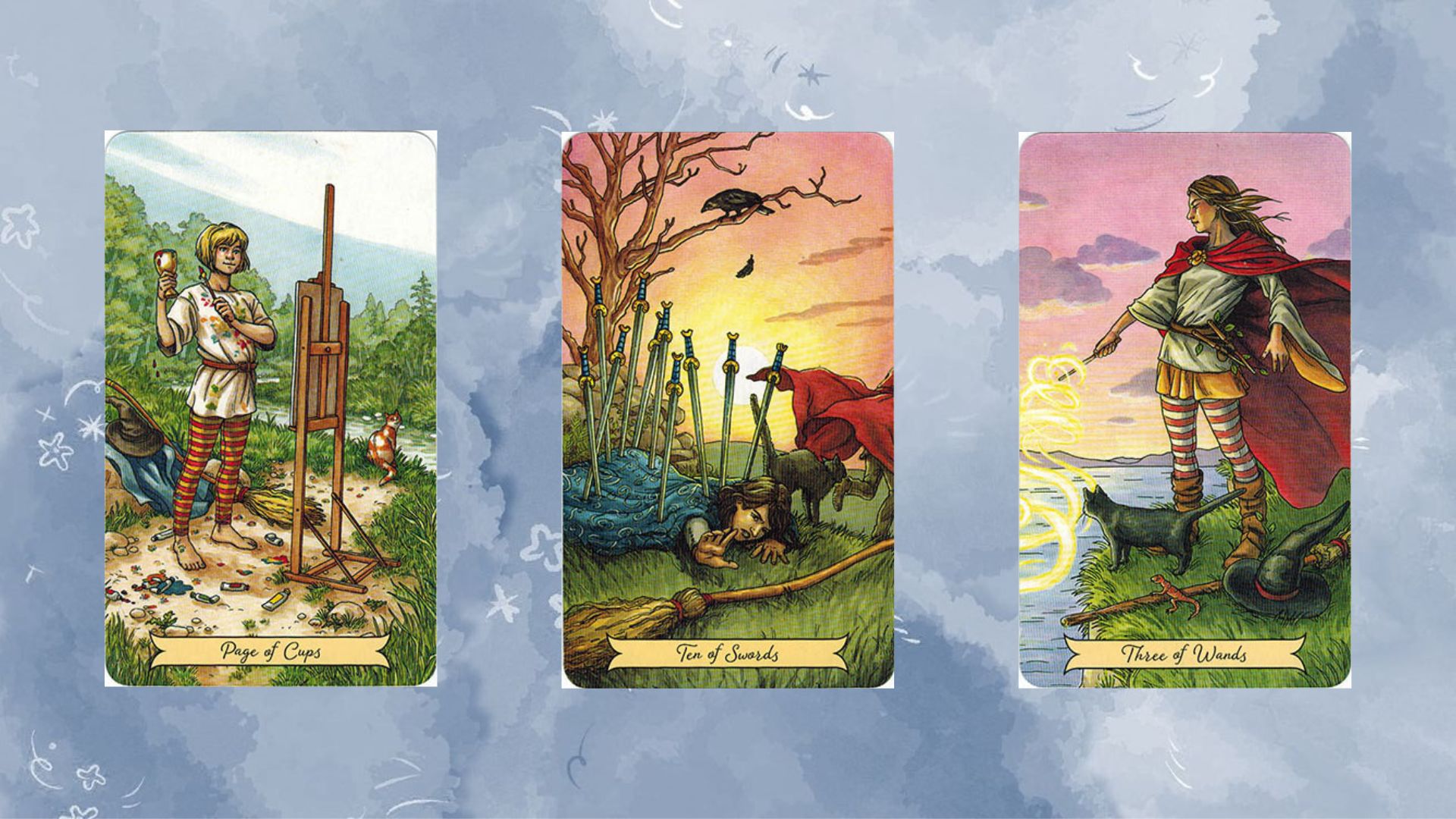 Bạn có: Page of Cups – Ten of Swords – Three of Wands