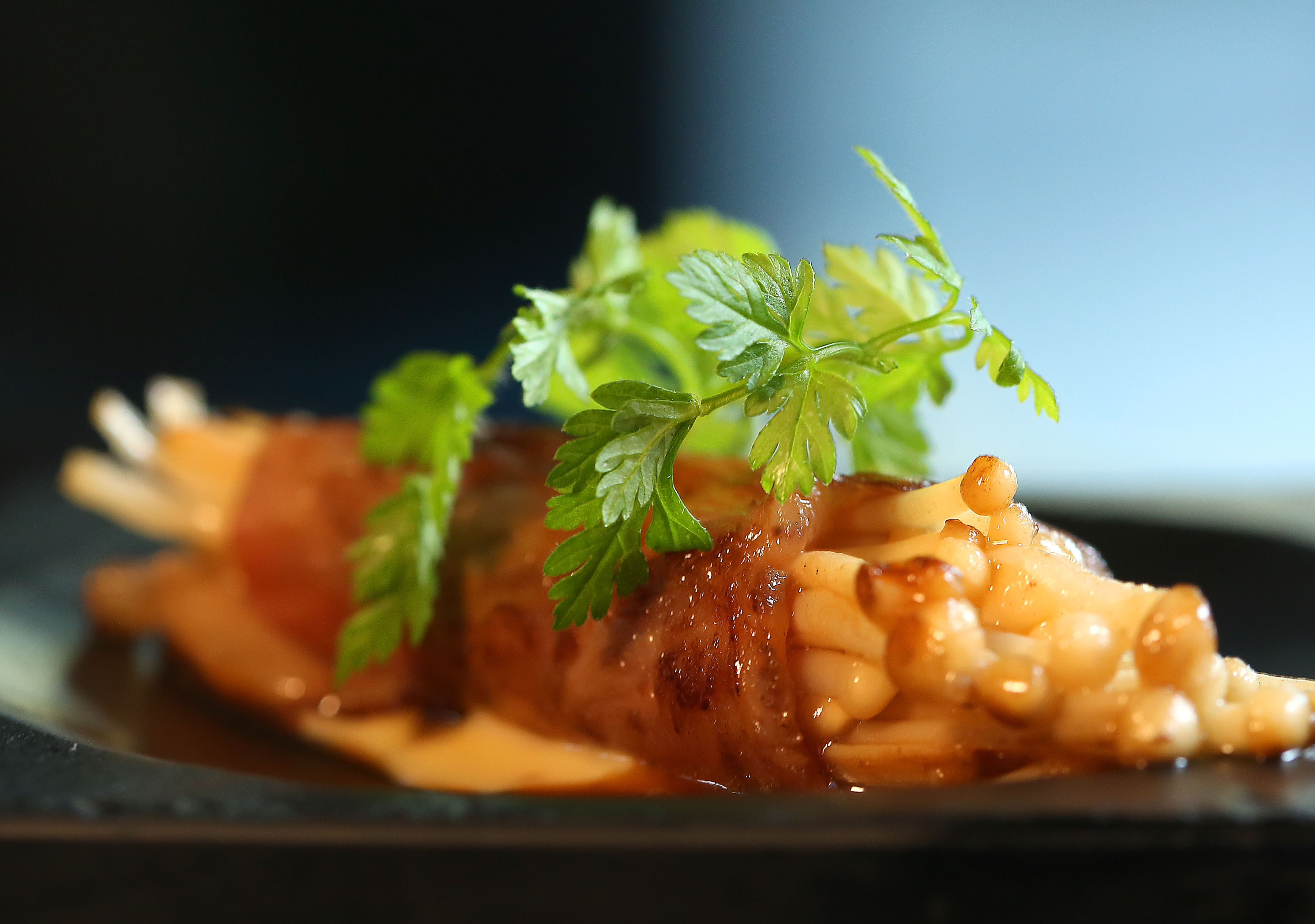 Không chỉ có những món ngon xuất sắc, The Grill còn khiến bạn không thể rời mắt khỏi cảnh tượng đẹp như trong tranh trải rộng ngoài cửa sổ nhà hàng với khu vườn xanh ngập nắng, bãi cát trắng và mặt biển mênh mông. Còn nếu ghé nhà hàng vào buổi tối, bạn sẽ thích thú với không gian ẩm thực mang phong cách phương Tây đương đại với khu vực bếp mở để các đầu bếp phô diễn kỹ năng nấu nướng điêu luyện cùng quầy bar và hầm rượu trang nhã. Khám phá bữa tiệc Giáng sinh đặc biệt với thực đơn ba món tinh tế tại The Grill trong dịp lễ hội cuối năm này. Bắt đầu bữa tối nhẹ với amuse bouche, rồi khai vị hải sản nướng hấp dẫn với hàu, tôm sú, sò điệp và nghêu. Điểm nhấn của thực đơn là món chính – bít-tết thăn bò Rossini, phục vụ cùng với gan ngỗng và sốt nấm truffle. Bữa tối được kết thúc thú vị với tráng miệng được biểu diễn đầy tính nghệ thuật của đầu bếp tại bàn.