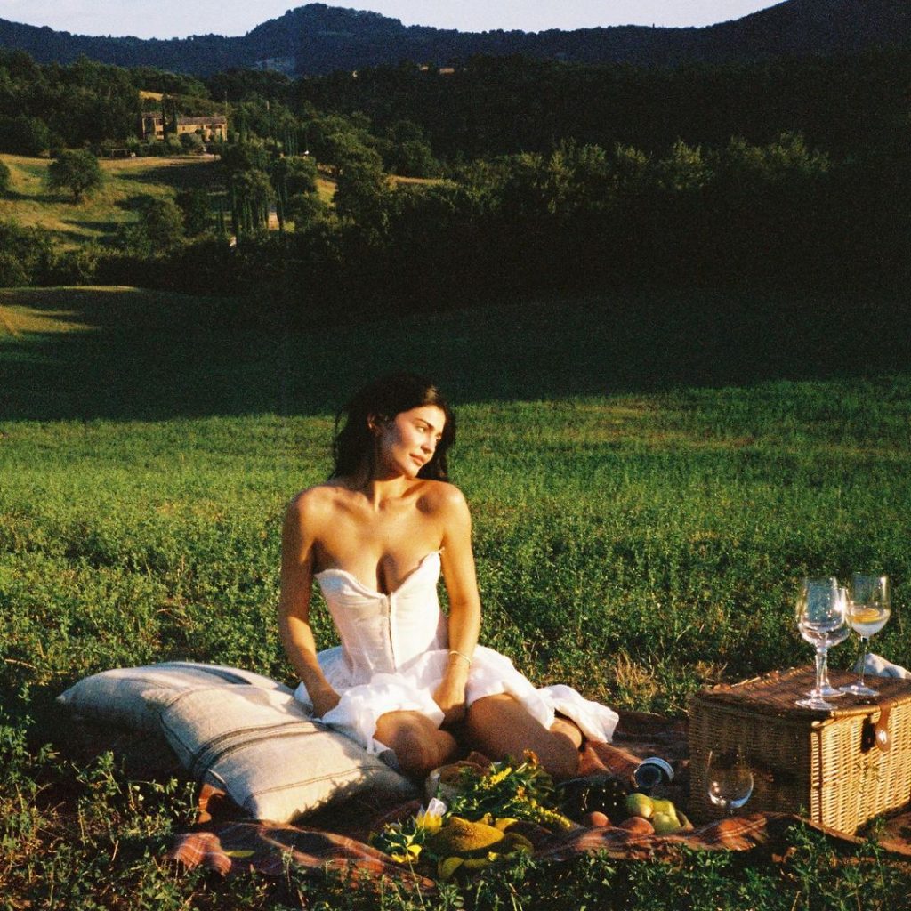 Nhìn vào bài đăng Instagram tháng 8/2023 vừa qua, chúng ta mới nhận ra rằng khuôn mặt của Jenner chính là nơi hoàn hảo để những đốm tàn nhang trở nên cực kỳ xinh đẹp. Chỉ đơn giản là một buổi picnic ấm áp ngoài trời, một tà váy trắng tinh khôi, một lối trang điểm nhẹ nhàng… Ấy vậy mà trông Kylie thật đẹp như một giấc mơ trưa!