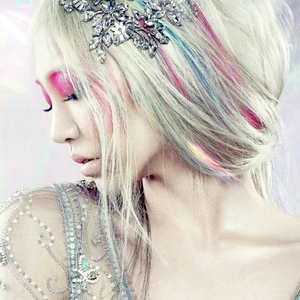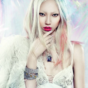 Những nhân vật nữ trong truyện tranh Manga của Nhật Bản luôn là hiện thân của sự nữ tính pha trộn với sự mạnh mẽ và phá cách. ELLE tìm thấy những cảm hứng mới mẻ từ sự đối nghịch đó bằng cách pha trộn những sắc màu của đá trang sức trên mái tóc được nhuộm tie-dye, bầu mắt và trên gò má.