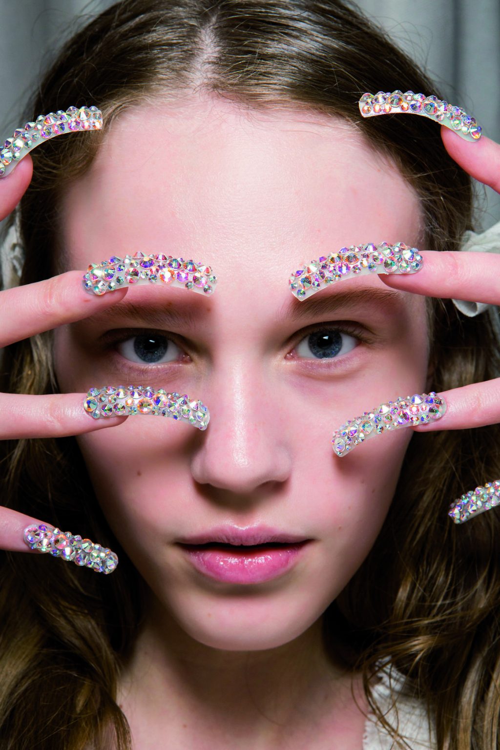 Nếu bạn hoạt động nhiều, những bộ móng đính đá hay pha lê trang trí như trong show diễn Gucci có lẽ không phù hợp. Nhưng khoan hãy nói lời chối từ với kiểu móng này vì bạn vẫn có những sự lựa chọn linh động hơn. Đó là đính cẩn ở một móng như ở Antonio Marras để tạo sự khác biệt đôi chút hoặc dán toàn bộ móng với hạt dẹp như ở House of Holland để giảm thiểu sự vướng víu.