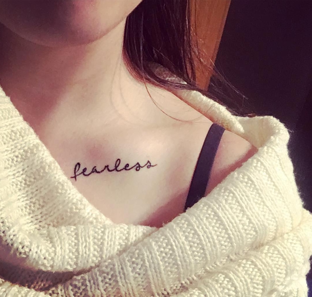 Những hình xăm hoa nhỏ xinh hoặc nét chữ thanh mảnh giúp bạn trông thu hút hơn. Hình xăm ở xương quai xanh khá dễ để che giấu bởi trang phục.