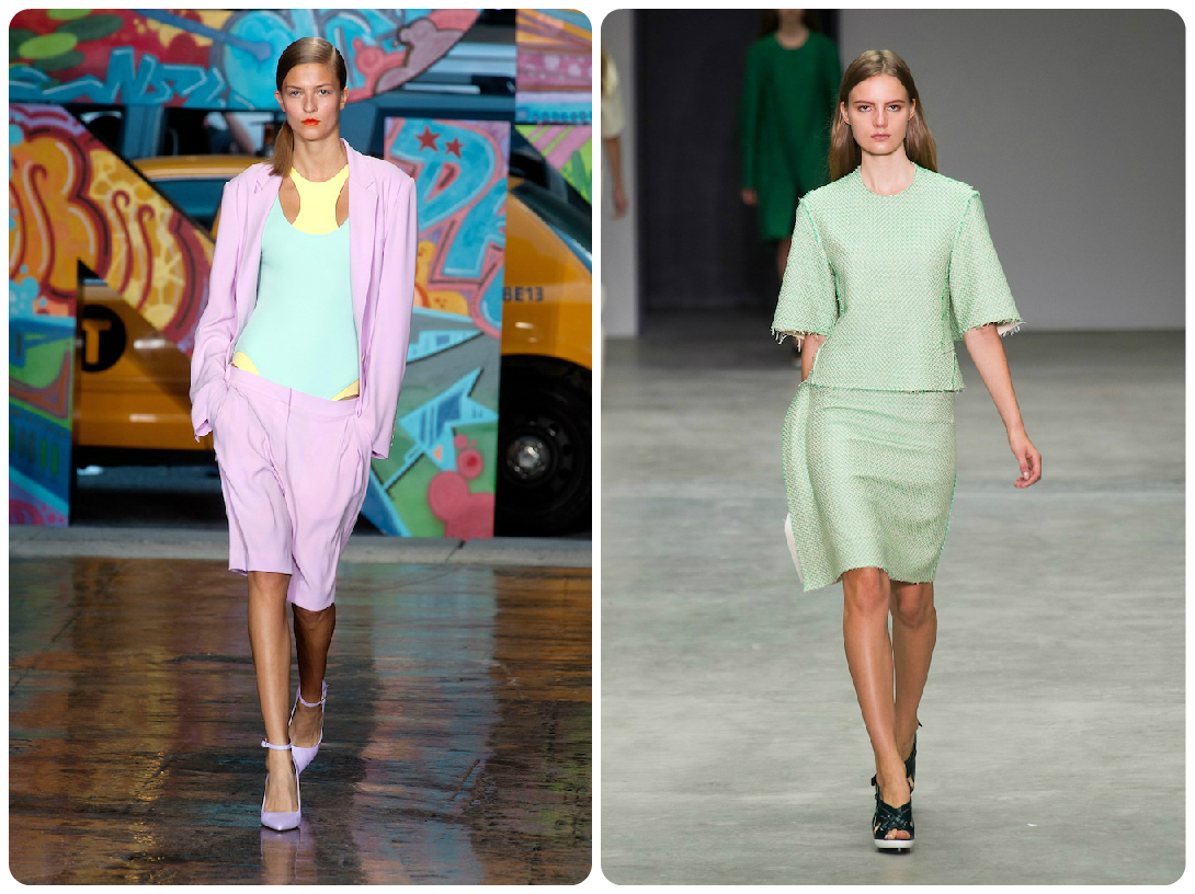 Không cần quá nổi bật như những màu neon, gam màu kẹo đang được yêu thích trên sàn diễn catwalk bởi sự tinh nghịch và dịu dàng của chúng. Năm nay màu xanh icy, màu bạc hà tươi, tím ngả xanh, hay vàng cam đang rất được ưa chuộng. Những sắc màu này sẽ giúp bạn tạo một sự nhấn nhá dịu nhẹ trong mùa hè năm nay.