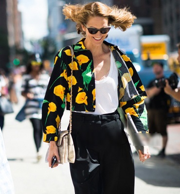 Đừng nghĩ rằng trang phục họa tiết hoa chỉ dành cho những cô nàng điệu đà, nữ tính. Một chiếc áo blazer hoa sẽ trở nên thú vị hơn rất nhiều khi kết hợp cùng quần jeans boyfriend và áo trắng đơn giản, đi cùng giày oxford hoặc sneakers sẽ giúp bạn trông khác biệt và cá tính.