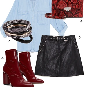 Áo sơmi denim có thể “lột xác” thành những cô nàng tiệc tùng sành điệu. Phá cách hơn, bạn có thể mở 1 – 2 cút áo đầu tiên, để lộ một phần áo lót bên trong, vừa quyến rũ vừa tinh tế. Chân váy da và boots là hai mảnh ghép không thể thiếu. Lựa chọn chất liệu da bóng, họa tiết da động vật tạo điểm nhấn thu hút ánh nhìn.