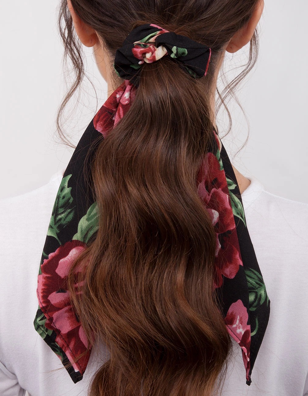 Đây là phụ kiện có thể tạo ra muôn vàn kiểu biến tấu, từ dùng làm khăn cổ, đeo tay, buộc tóc đến trang trí túi xách… Để tạo điểm nhấn nữ tính cho những bộ trang phục đơn giản, bạn có thể biến khăn thành dây buộc tóc. Đa phần phụ kiện khăn hiện nay được làm từ chất liệu satin có độ bóng nhẹ nhưng dễ tuột. Để khắc phục điều này, bạn có thể chọn dây buộc tóc vải kèm khăn nhỏ cùng hoạ tiết.