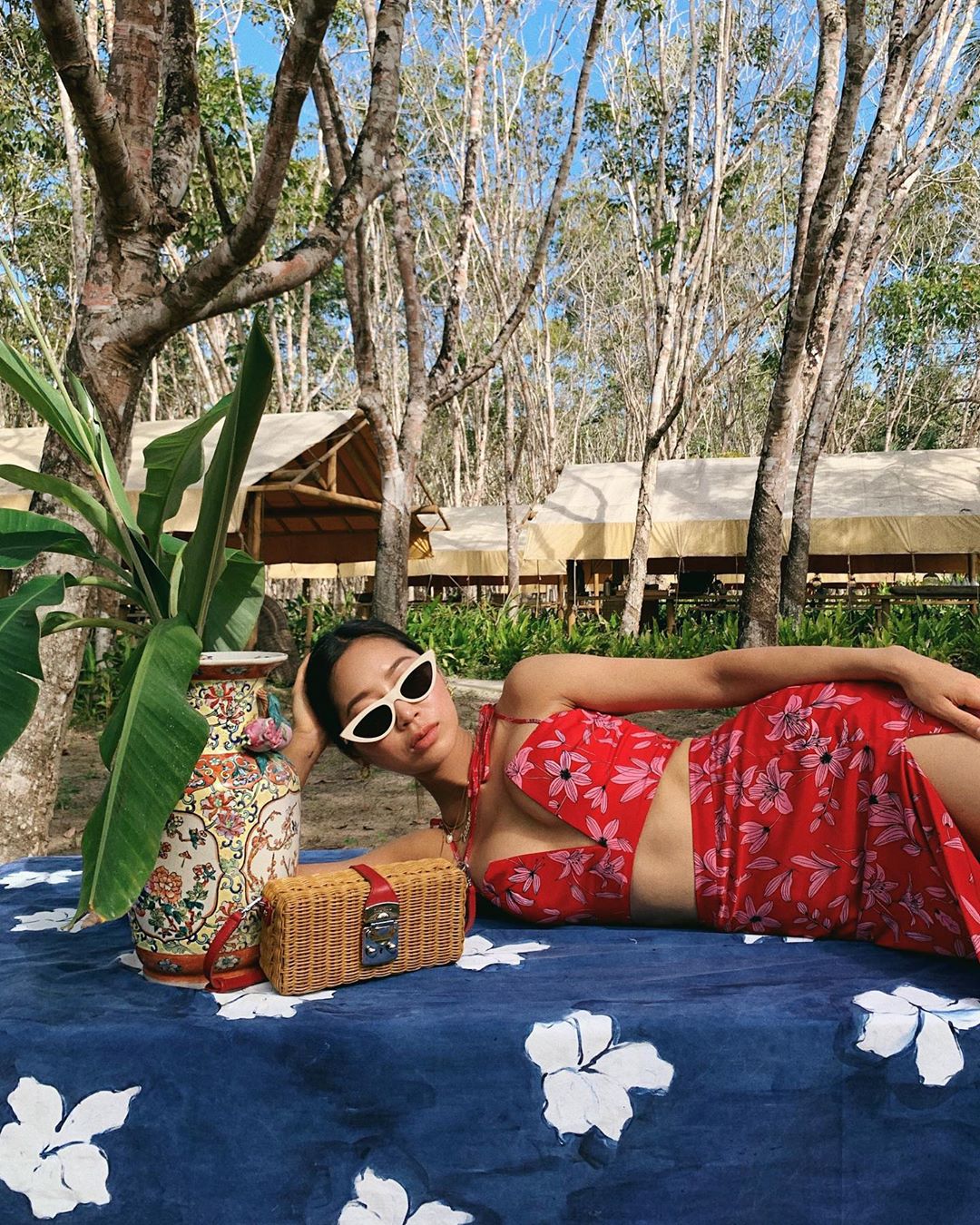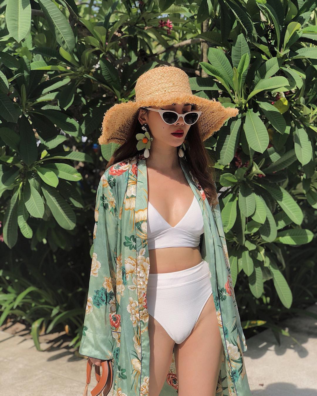 Giữa bức tranh biển xanh và cát trắng, không gì phù hợp hơn những bộ trang phục in họa tiết sặc sỡ. Những chiếc đầm dài thướt tha cùng màu sắc bắt mắt sẽ giúp bạn “ăn ảnh” hơn khi chụp hình. Bên cạnh đó, áo khoác kimono dáng dài in họa tiết cũng là gợi ý tuyệt vời để kết hợp cùng bikini.