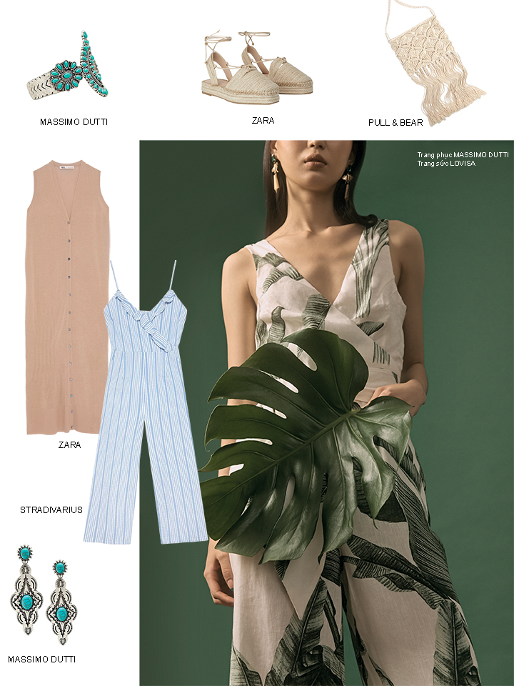 Mùa Hè năm nay chứng kiến sự bùng nổ của các loại jumpsuit trên nền vải, màu sắc, họa tiết và kiểu dáng phong phú. Chất liệu linen bỗng trở nên nhí nhảnh hơn, vui tươi hơn với họa tiết hoa lá sặc sỡ. Một gợi ý phù hợp cho chuyến dã ngoại cuối tuần: jumpsuit, áo crop top, một đôi dép mules thoải mái và một vài `phụ kiện không thể thiếu trong buổi picnic vui nhộn.