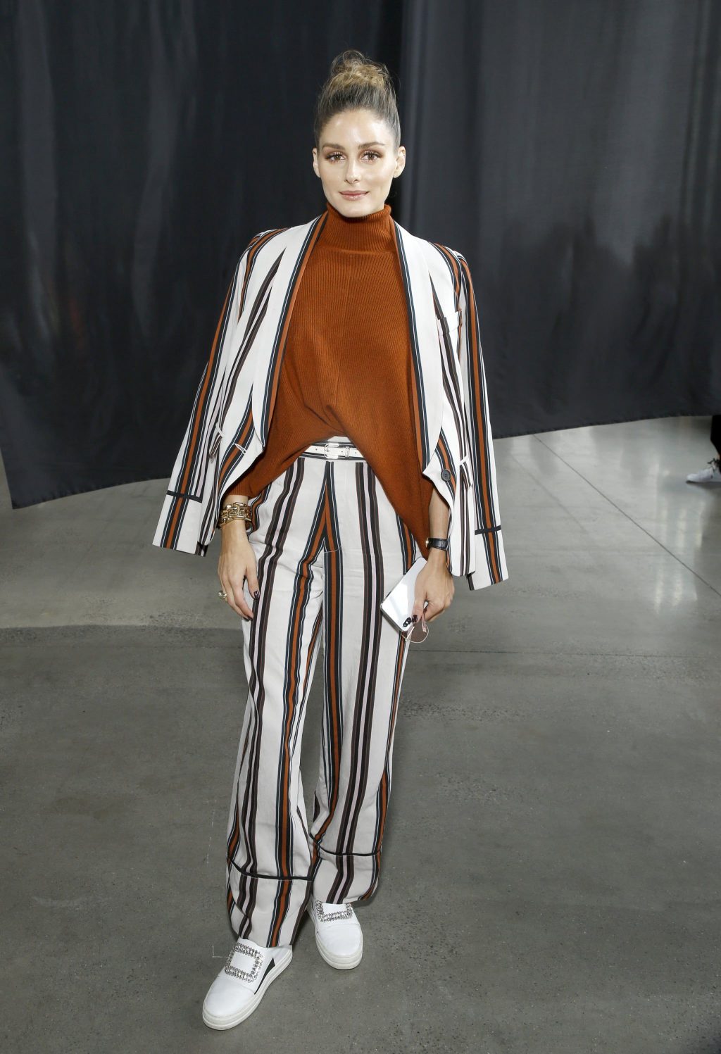 Suit là bộ trang phục không thể thiếu trong tủ đồ của những cô nàng công sở. Tuy nhiên, bạn có thể học theo Olivia để làm mới phong cách thời trang hằng ngày. Kết hợp cùng áo khoác thể thao, áo len cổ lọ hay bodysuit ren gợi cảm… là những cách được cô nàng áp dụng để bộ suit trông thú vị hơn.