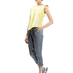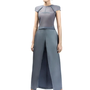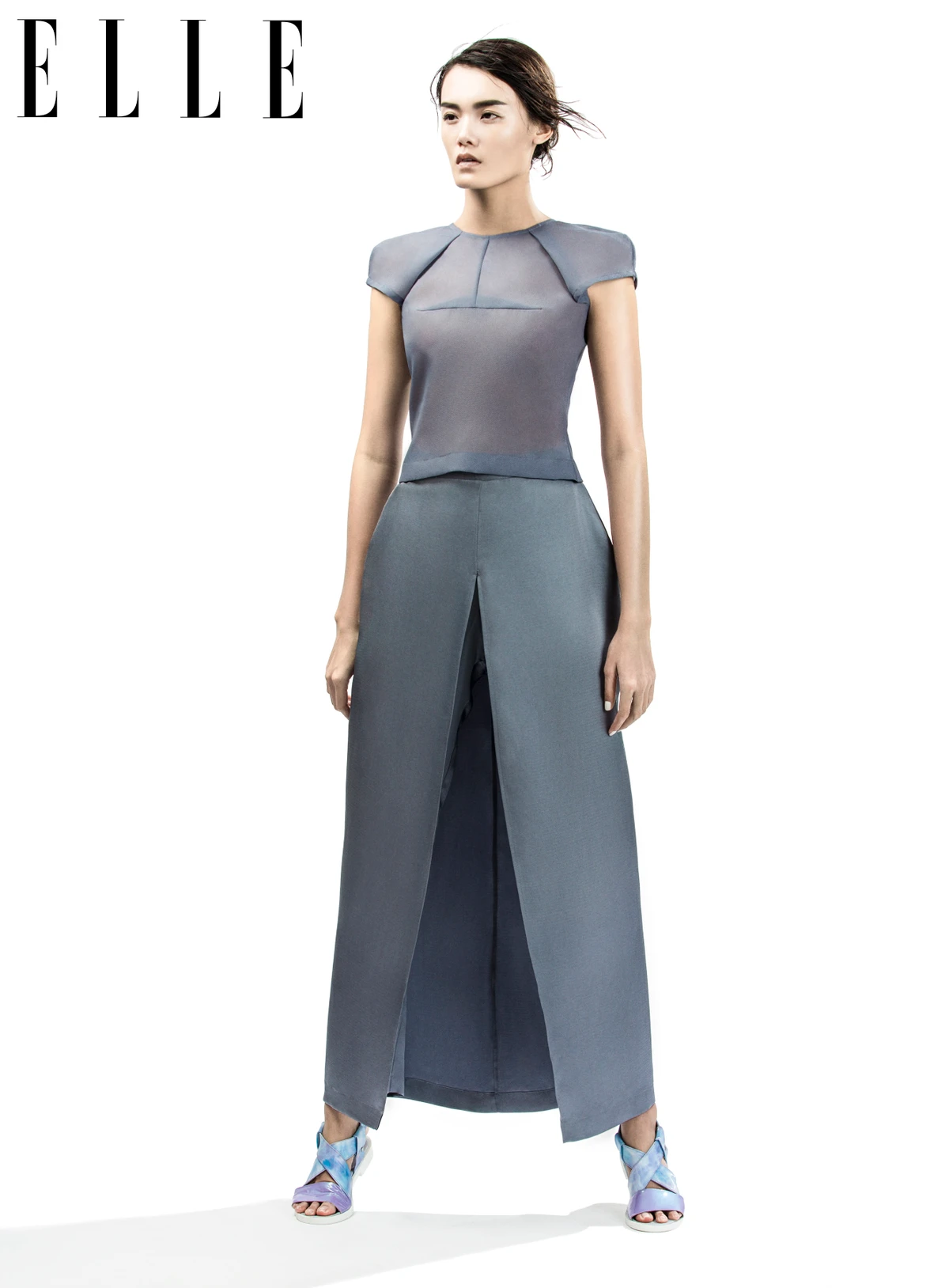 Chất liệu lụa organza nữ tính và màu sắc pastel hay trung tính nhẹ nhàng kết hợp với đường cắt xẻ mạnh mẽ tạo nên sự đối lập thú vị.