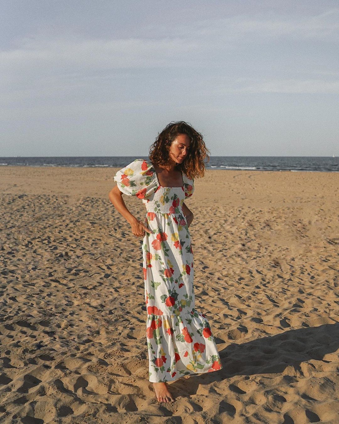 Cô thường chọn những kiểu đầm midi dài qua đầu gối, có chi tiết xếp tầng hoặc tay phồng nữ tính. Ngoài ra, nữ minh tinh còn ưa chuộng những chiếc quần lửng ôm sát đầy màu sắc, phối cùng áo sơ mi trắng giản tiện cho ngày Hè.
