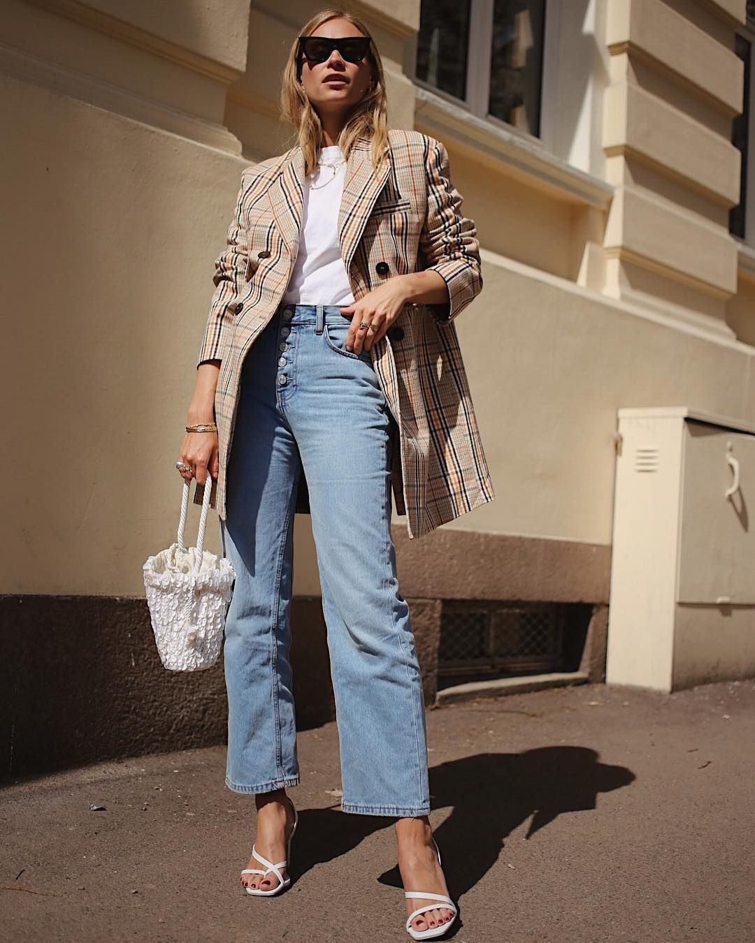 Tuy không phải là một thiết kế mới lạ, giày sandal nữ mũi vuông “bùng nổ” thành xu hướng thời trang nổi bật trong những năm 1990 nhờ sự lăng xê của Vivienne Westwood. Nếu theo đuổi phong cách vintage aesthetic, cách kết hợp giày sandal cùng quần mom jeans và áo sơ mi trắng là lựa chọn tuyệt vời dành cho bạn.
