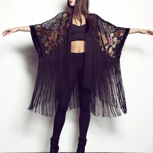 Kimono voan luôn là sự lựa chọn hàng đầu cho thời tiết ấm áp của mùa Xuân hoặc mát mẻ của mùa Thu. Với chất liệu voan mỏng, nhẹ và mềm mại, những chiếc áo thường được khoác hờ, lấp ló bờ vai nhỏ đầy nữ tính của các cô nàng điệu đà. Áo khoác dáng kimono có thiết kế khá đa dạng với họa tiết in hoa, thêu ren, có tua rua – đặc trưng của phong cách bohemian, đơn giản, tính ứng dụng cao và dễ dàng kết hợp với mọi thứ. Từ tinh thần vui tươi, trẻ trung trong những buổi sáng muộn đến vẻ quyến rũ, gợi cảm trong những buổi tiệc đêm, tất cả đều có thể tìm thấy ở chiếc áo khoác kimono.