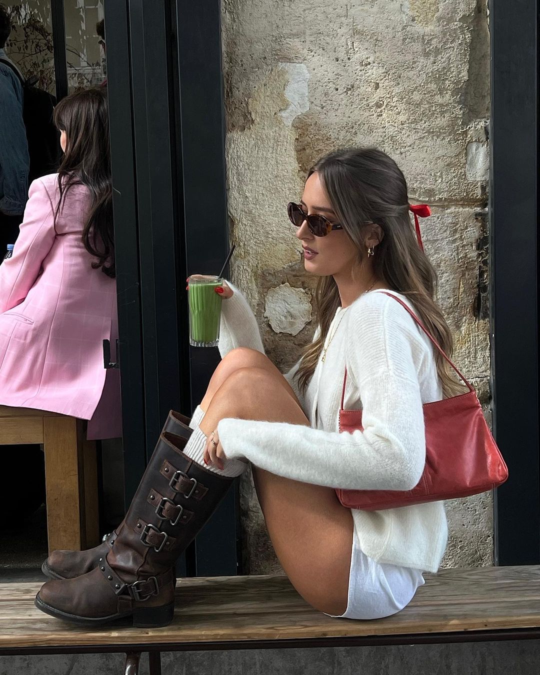 Giới trẻ nhiệt tình hưởng ứng xu hướng túi xách màu sắc sặc sỡ này, thổi bùng “làn gió mới” trong những khoảnh khắc thời trang Thu bắt mắt. Cô nàng Clara thu hút sự chú ý với sự kết hợp giữa áo sơ mi trắng và denim cùng chiếc túi màu đỏ nóng bỏng. Người đẹp phối nhiều phụ kiện như vòng cổ có mặt hình trái tim và vòng cổ mỏng làm tăng gấp đôi vẻ đẹp nữ tính. Sofia Coelho kết hợp áo và quần trong suốt táo bạo với đôi bốt dài bằng da có chi tiết khóa thô, đồng thời thể hiện sự hiện diện của mình bằng chiếc túi màu hồng có họa tiết đan tương tự như các items nổi bật từng xuất hiện trong những bộ phim tuổi teen những năm 2000.